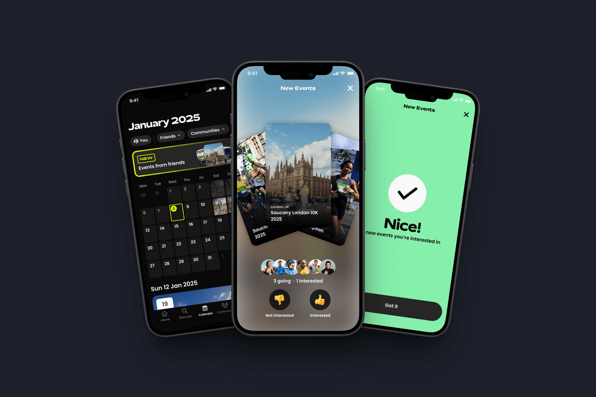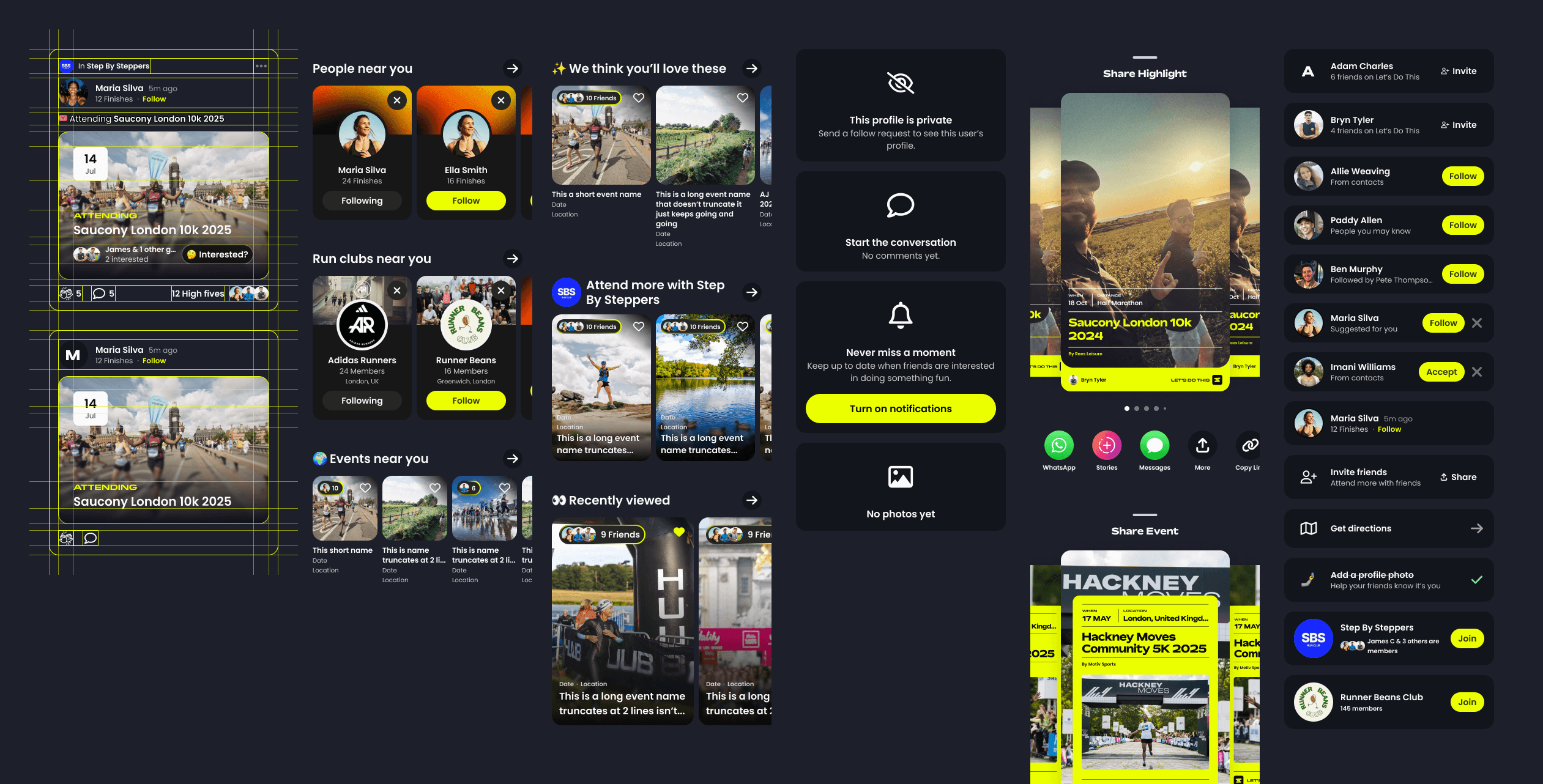 User research → We’d consistently heard that a pain point for participants was only finding out a friend had done an event afterwards on Instagram or Strava. We felt we could position ourselves as the social discovery platform to let you plan for the future with your friends.