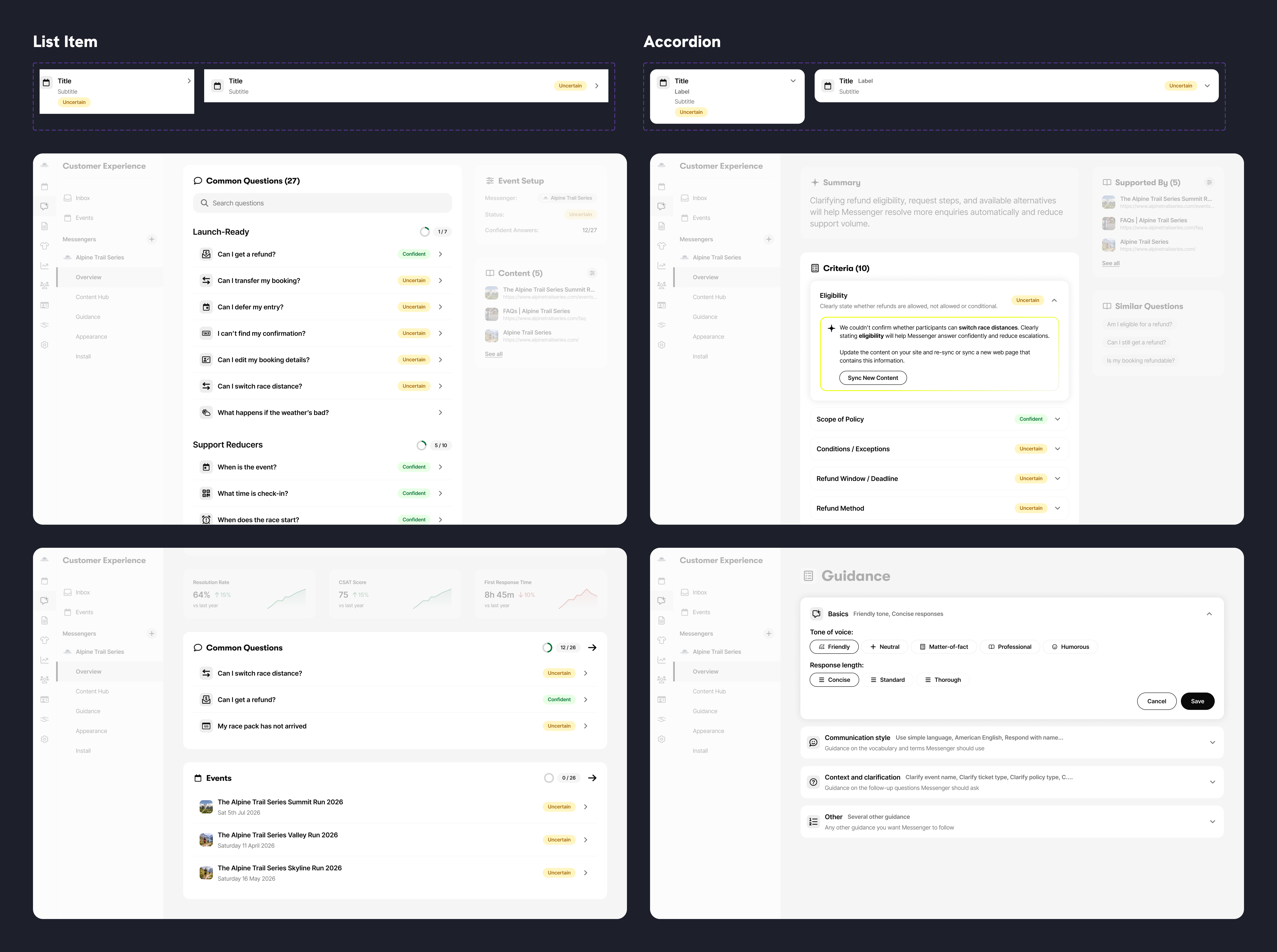 Designing Messenger therefore meant focusing less on the AI itself and more on the surrounding system: making reliability visible, reducing anxiety during setup, and giving organisers clear control over how the assistant behaves.
