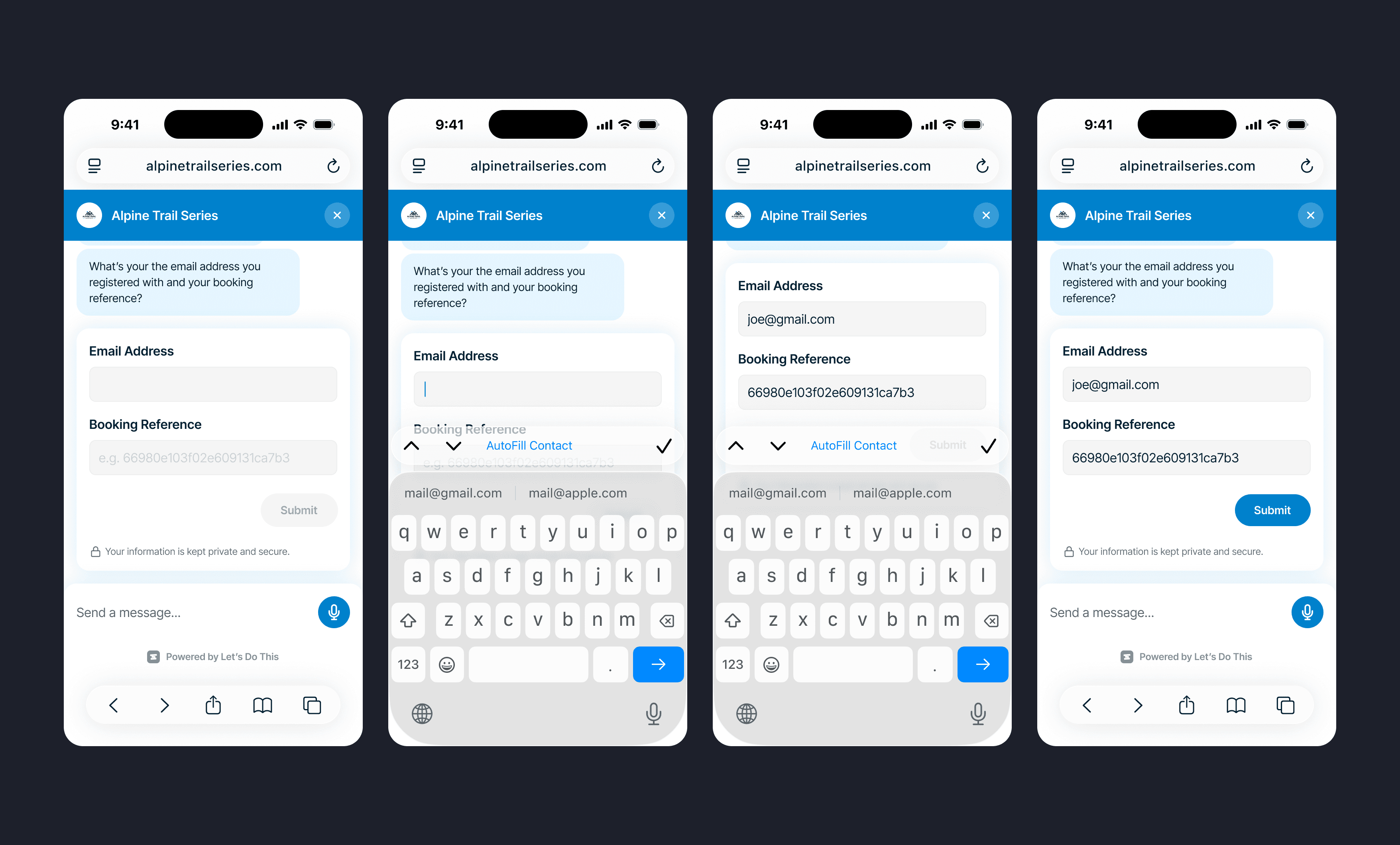 Some conversations require participants to provide structured information such as email addresses, booking details or registration information.