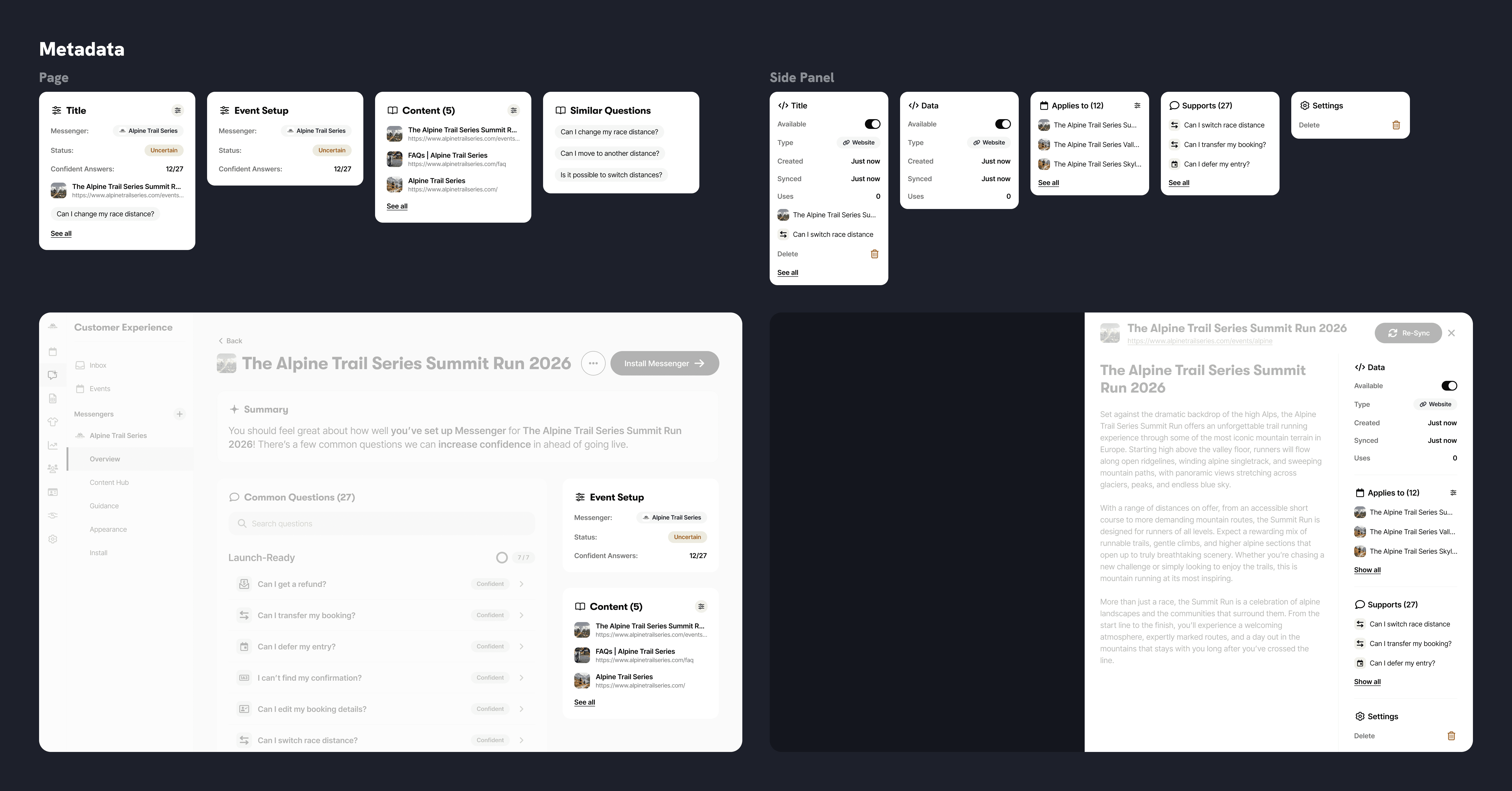 Through organiser interviews, support team insights, and AI analysis of event websites, we identified 27 questions participants consistently ask. Rather than trying to cover every scenario, the goal was to cover enough real-world cases that organisers could feel confident installing Messenger.