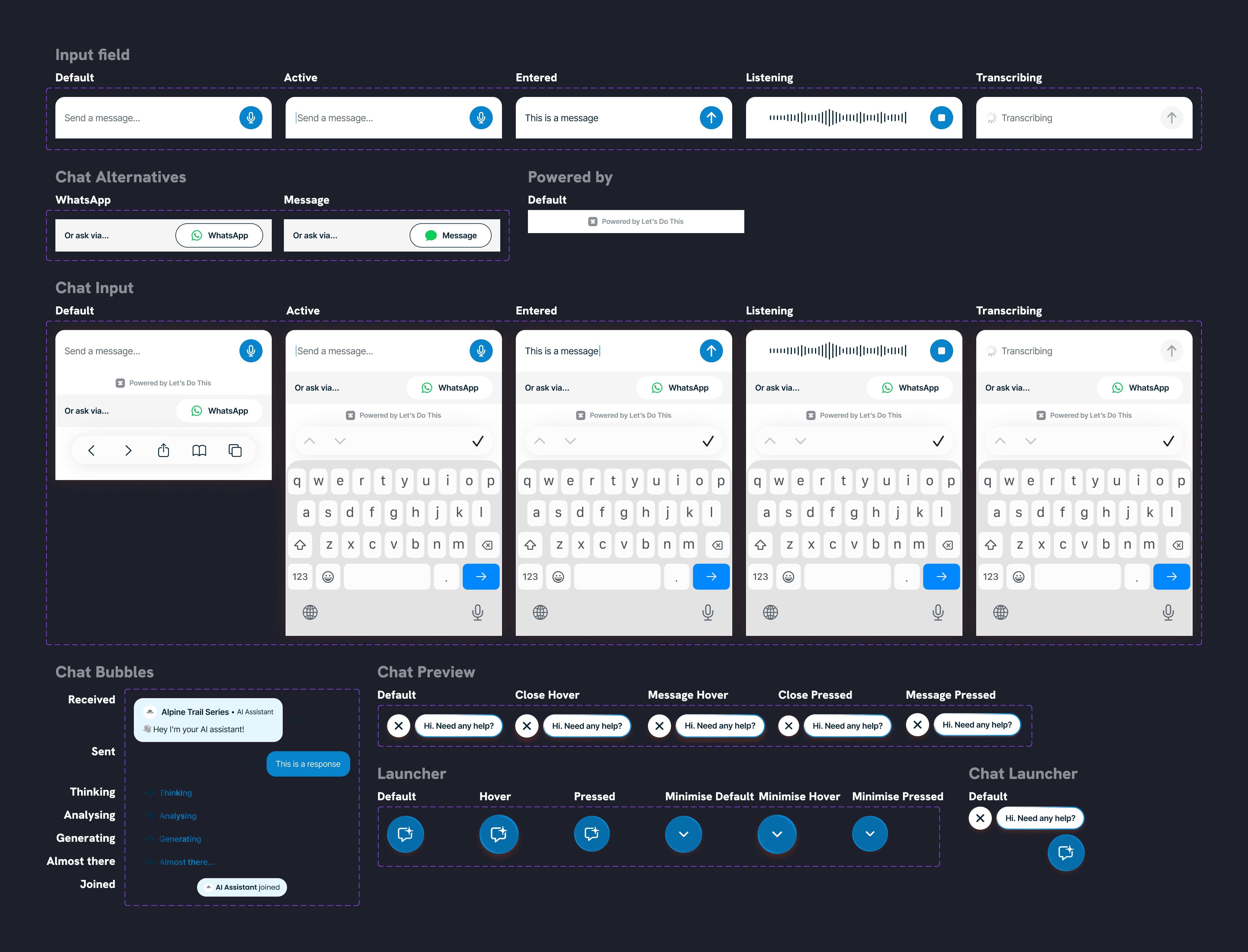 Designing this experience required more than simple chat bubbles. The system needed to handle multiple input methods, structured data, feedback states, and different event brands while remaining clear and trustworthy.